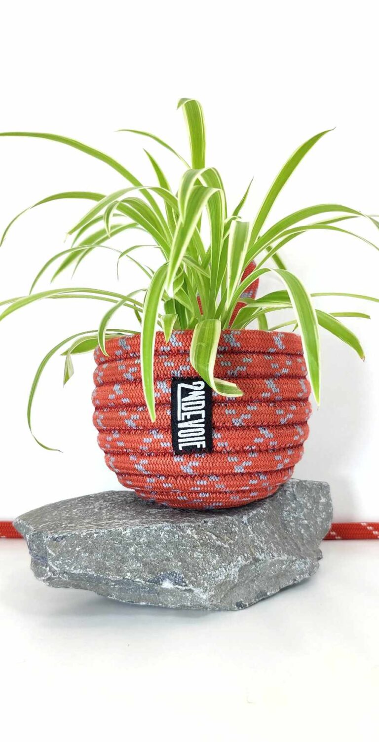 Accessoire déco, ce petit pot, vide poche, cache pot est réalisé avec une seule corde cousue de 3 m de long.