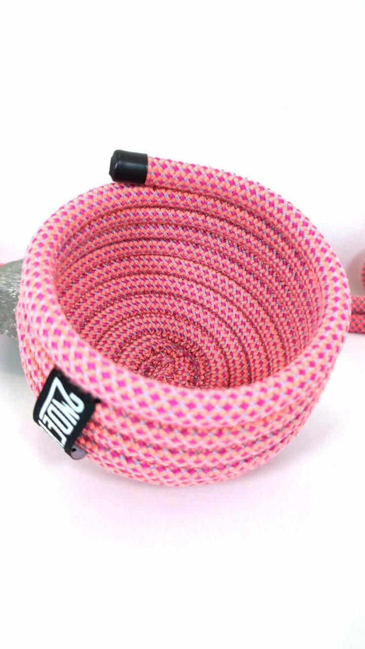 3m de corde sculptée. Petit pot en corde d'escalade upcyclée, cousue et sculptée au gré d'une intention. Objet décoratif, esthétique, durable et fabriqué avec une matière première robuste collectée localement.