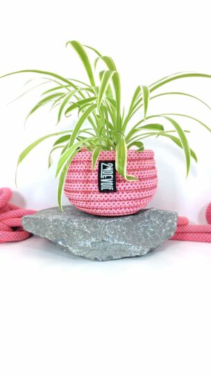 Accessoire déco, ce petit pot, vide poche, cache pot, est réalisé avec une seule corde cousue de 3 m de long.