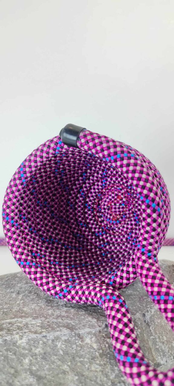 Mes créations sont éco-durables, uniques, dessinées et fabriquées dans les Pyrénées à partir de cordes d'escalade réformées qui m'ont été confiées par des grimpeurs et des amateurs de plein air pyrénéens.. Entièrement fait main et confectionnées avec soin, belle finition. Elles peuvent-être réalisées dans d'autres coloris et assorties à d'autres accessoires. N'hésitez pas à me contacter pour personnaliser vos commandes.