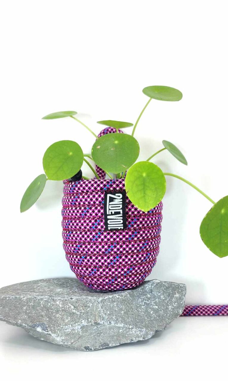 3m de corde sculptée. Pot en corde d'escalade upcyclée, cousue et sculptée au gré d'une intention. Objet décoratif, esthétique, durable et fabriqué avec une matière première robuste collectée localement.