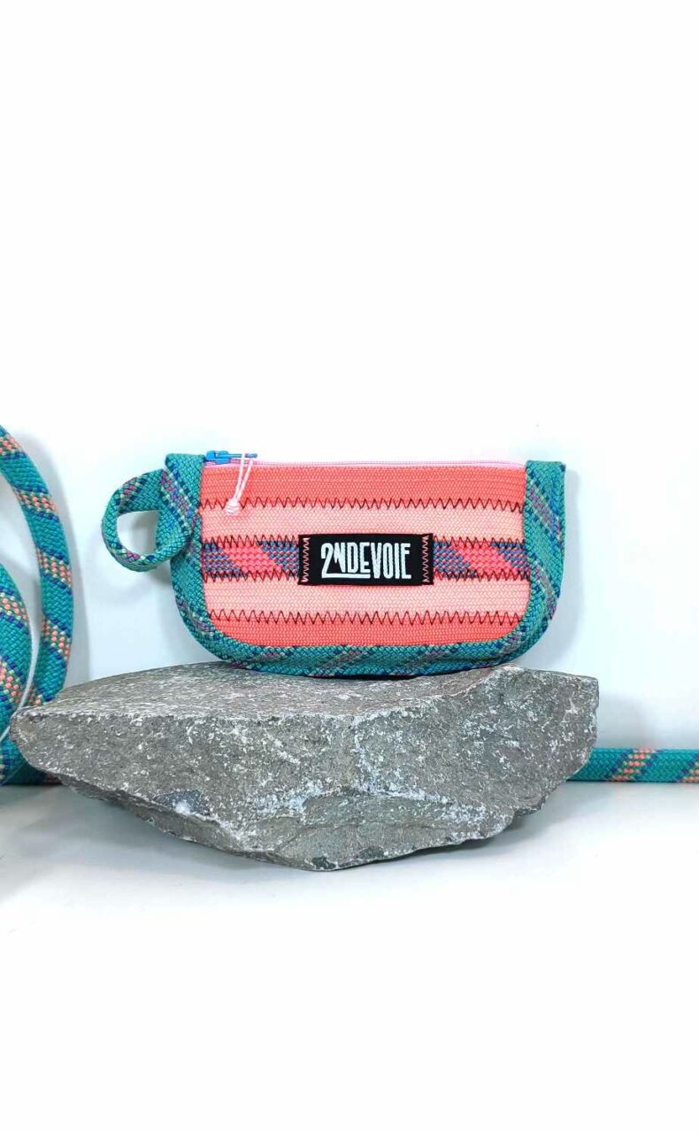 Porte monnaie réalisé à partir de cordes d'escalade réformées.